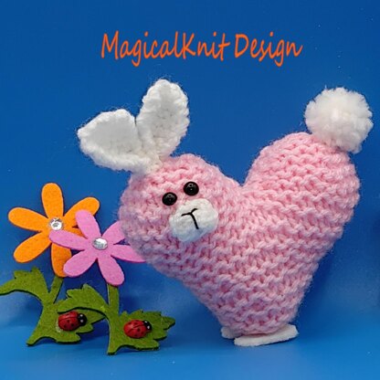 This is Pinky Love bunny, knitted flat with straight Knitting needles, easy to follow with row by row written instructions and photo-tutorial.