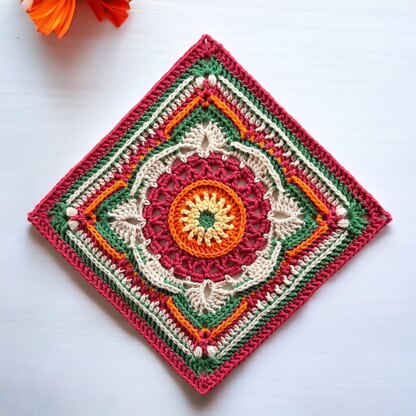This square is versatile and can be used to create a variety of items such as an afghan blanket, throw pillow, purse or tote bag when combined with other squares. Your creativity is the only limit for your project.