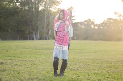 The Piper Hooded Shawl is a lacey shawl with a leaf or raindrop motif, depending on the colors you choose. I designed this motif for my younger sister, Piper, and named the shawl after her. This intricate looking shawl is perfect for any season. The pattern repeats make this shawl fun and easy.
