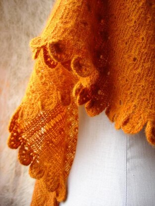 I recommend this pattern for knitters with some experience knitting shawls due to the different shape, special stitches and techniques used.