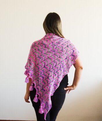 This shawl features a striped zig-zag that grows into a fascinating triangular shape.
