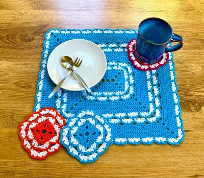 This is a fun, beginners crochet pattern, for making a pretty placemat and coaster set. You can crochet this cute set for your home or make it as a gift for someone special !!