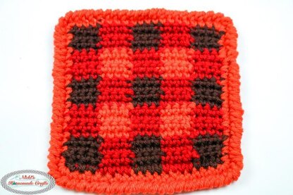 This crochet pattern (available on my website) is called a Plaid Coaster and is made with single crochet stitches in 3 colors easily. It also has a reverse single crochet border. The pattern comes with a detailed video tutorial as well.