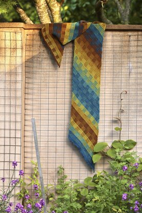 The pictured wrap used a set of 5 x 50g skeins of Purist fingering weight yarns, totalling 900m/250g of yarn and measures 220x33cm (87x14in) after blocking.