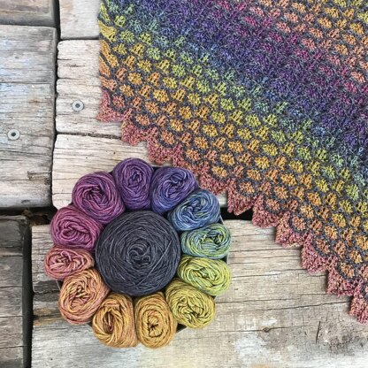The pattern is designed for mini skein sets such as this Pook Yarns Advent Gradient set, and would also suit an assortment of leftovers, or a pair of contrasting yarns or gradients.