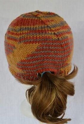 A ponytail pleasing, semi fitted cap! This hat is Knit In The Round and the hole is a very large, one row buttonhole. Wear yours high, where yours low, or wear it somewhere in between, you can place the hole anywhere your ponytail desires! Instructions are written out, with step by step directions to knit your way through making the buttonhole. Pattern includes instructions for eight sizes.