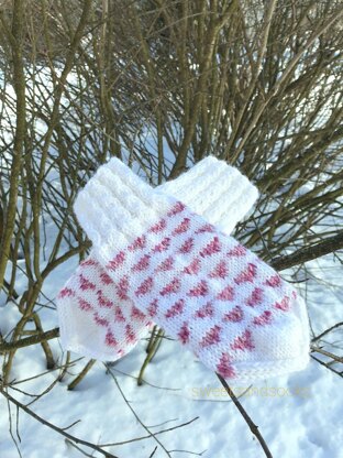 Heippa, kiva, että olet löytänyt tämän neuleohjeen pariin. :) Nämä lapaset ovat helpohkot lapaset ja sopivat sekä aloittelijalle että kokeneelle neulojalle. Tarvitset alle 100 g kahta väriä lankaa ja sopivan kokoiset sukkapuikot. Kuvassa näkyvien lapasten paino on n.70 g. Ohjeessa on kaavio sekä kirjallista ohjetta. Ohje on pyritty suunnittelemaan siten, että pitkiä langanjuoksuja ei tulisi ollenkaan. Tämän vuoksi myös kirjoneulealoittelijan on helppo tarttua tähän ohjeeseen. Lapaset eivät ulotu pitkälle käsivarteen, mutta peittävät ranteen.