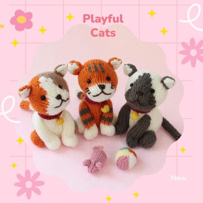 You only need small amounts of DK (8-ply) and 4-ply (fingering) yarn. DK in orange, white, light brown, and charcoal grey. 4-ply in red and yellow. Use any colours for the toy mouse and the ball.