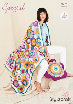 Playful Posy Blanket and Cushion in Stylecraft Special Aran - 9771 - Downloadable PDF is a Intermediate Crochet pattern by Stylecraft, available as a Downloadable PDF and includes instructions in English. Super fun to make, this pattern could be your next masterpiece!