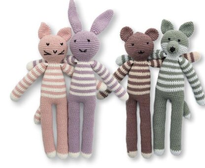 Playmates Pdf Crochet Pattern Rabbit Cat Bear Fox