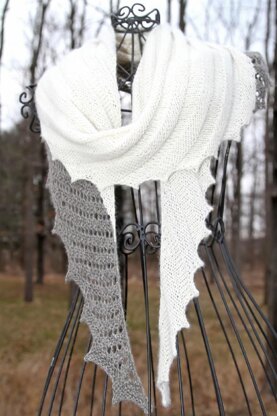 This simple pattern makes beautiful and elegant shawl. Rotation of the stockinette stitch makes the shawl pleated and reversible.