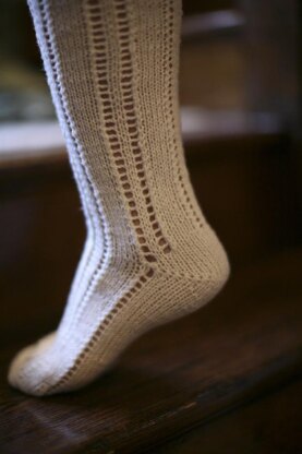 These toe up, short-row heel socks add a bit of glamour to a practical idea. Knee socks offer an extra layer of warmth underneath jeans or a skirt and with just a bit of simple lace, socks become, well...sexy, even when the thermostat's turned down.