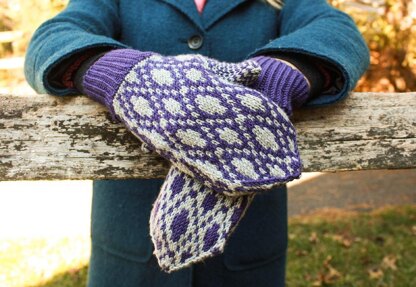 If you love the Pumpkin Butter socks, you'll love the Plum Pudding mittens! These mittens feature the same colorwork diamond pattern, but knit up in heavier yarn for a warm outer layer that works up quickly.
