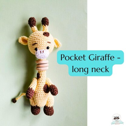 Crochet Amigurumi pattern of a long neck giraffe toy.