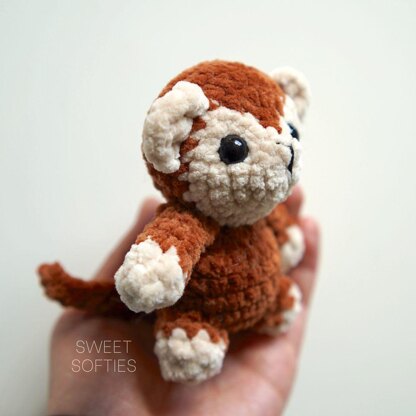 This Pocket Monkey pattern allows you to quickly and easily crochet this cute mini jungle safari creature. This pocket-sized stuffed animal sits at 4” in height and can fit in your palm. The ears are crocheted directly onto the head in a no-sew manner, and the color changes allow for details on the face. This project is designed with super bulky chenille velvet or blanket yarn, but it can also be made with thinner yarns to create an even smaller, keychain version. It can also turn into an ape, gorilla, or chimpanzee. This little toy is great for craft fairs, markets, or kids party favors. It’s a unisex and gender neutral stuffie that will appeal to boys, girls, children, adults, and everyone in between! It’s a great last-minute birthday and holiday gift. The PDF pattern includes full written instructions & photo references to guide you through the process.
