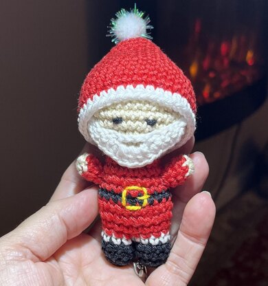 A tiny Santa that fits in your pocket or hangs from the Christmas Tree. His finished size is just 5in (13cm) The legs, body and head are all worked as one piece, in rounds, starting with the legs. Though the stitches used are basic the size requires some experience as it can be rather fiddly. The Pattern uses very little yarn so more than one can be made from a 50g ball.