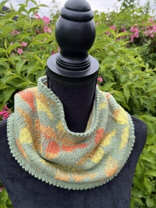 Cowl knitted in Fair Isle. Knitted in the rounds.