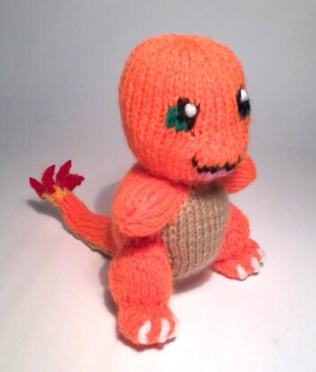 I wanted to create a pattern that was easy to knit but still gives that sweep of the tail that is so integral to the character of Charmander. The body, head and tail are all knit in one piece that achieves this. It was tricky to conceive but is now easy to knit. The eyes and mouth are also knit which means that Charmander is child friendly with no buttons or sewn on eyes.