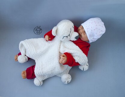 Amigurumi Polar Bear Toy Baby Lace Blanket. Head is movable. FINISHED SIZE of BLANKET: 14,57” x 12,99” ( 37 cm x 33 cm ).