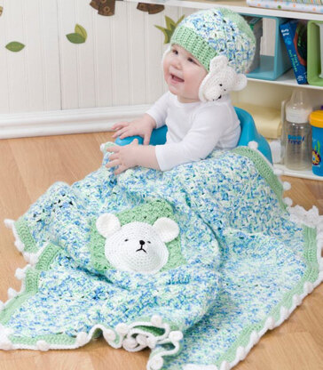 Polar Bear Blanket & Hat in Aunt Lydia's Fashion Crochet Thread Size 3 Solids and Red Heart Soft Baby Steps Prints - WR2165