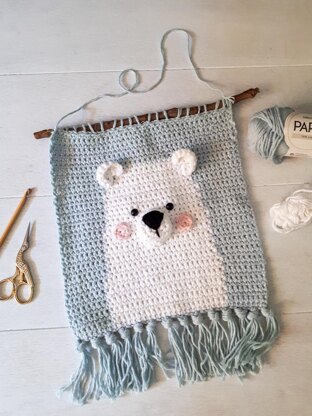 Crochet your own adorable wall hanging with this polar bear nursery wall decor crochet pattern. It's a very quick and easy project, and in no time you'll have a sweet gift for someone you love!