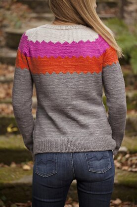 There’s no end to the color possibilities with this fun raglan pullover. Knit top-down and shown in Plucky Bello Worsted, you might want to knit yours in a gradient—or go crazy with a wild and totally unexpected color combo! How bold are you?