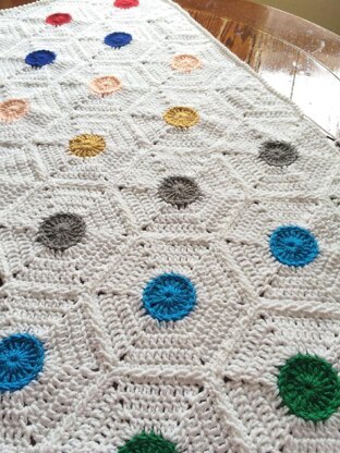 Polka Dot is a great way to add a fresh breeze to any room décor. I have included three different sizes of hexagon, and the smaller the hex, the more polka dots will fit in your blanket size. Anything will work! Check pattern for ideas to brainstorm.