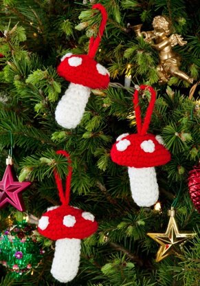 Polka Dot Mushrooms in Red Heart Super Saver Economy Solids - LW2657