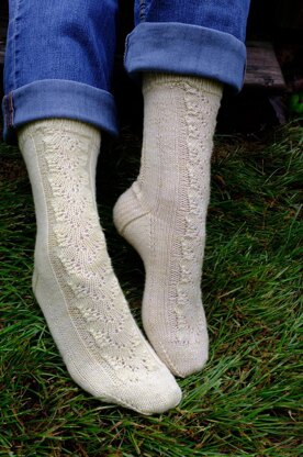 Skills needed: basic familiarity with sock construction, decreases, increases, 1/1 cables