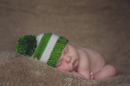 A little pom-pom beanie perfect for those precious newborn pictures. A great shower or new baby gift!