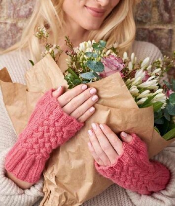 These cosy mittens have a long cuff which you can fold back or wear pushed up. The back of the hand features an interesting dense cable for extra warm, with smooth stocking stitch on the palms for comfort.