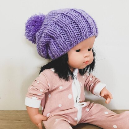 A simple, yet adorable little hat for dolly. The pompom hat fits the 38cm Miniland Doll or any doll with a head circumference of 30-32cm. This pattern includes options for the slouchy look or a more fitted style.
