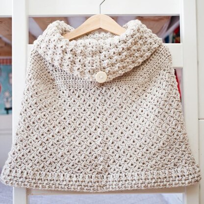 This little poncho will be perfect addition for any baby’s / child’s wardrobe. For a baby size instead of buttons you can simply lace it with some beautiful ribbon. The poncho is made as one piece, without seams.