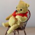 A bear most familiar; a bear who loves honey and is as honey coloured as the yarn he's knitted in. And who wears a fetching bright red top. Any guesses? By the way this is modelled on the illustrator's Ernest Shepard famous characterful bear and NOT from the famous cartoonist's versions. I wish to make that clear.