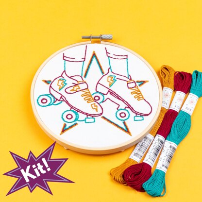 Lace up your skatees and get ready to roll because these Ziggy-Stardust-inspired wheels will have you itching for some roller derby. My hand embroidery kits include everything you need to start and finish the project. No late night trips to the craft store for you! I print all of my embroidery designs on the fabric in color, so there’s no guesswork. And I give you full skeins of embroidery thread, so you always have more than enough. Best of all, my kit papers expand to teach you the stitches. This way you can start sewing as soon as you open your kit, even if you’ve never stitched before and you’re at the beach with no cellphone service. The finished DIY embroidery kit measures 5” in diameter. Kit contains: Embroidery needle, 5" embroidery hoop, cotton fabric pre-printed with the pattern, embroidery thread, a stitch guide, instructions for how to display your finished project.Learn how to embroider with our guide to embroidery stitches!