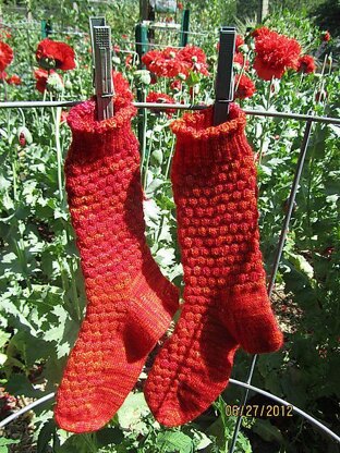 Description: Toe- up sock using a no-wrap slip stitch short row heel construction. This is much easier to execute than the standard wrap and turn heel, especially if you have trouble seeing the tiny wraps like I do. The stitch pattern is easily memorized and has great texture and stretch.