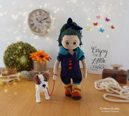 Easy to read doll and doggy crochet pattern with plenty of pictures and tips & tricks included. The pattern is a 32-page pdf document, in which I explain how to make the doll, pieces of clothing (jumpsuit, socks and boots) and the puppy. I guide you through finishing bits to create cute face and add character. Skill level: Intermediate. Skills required: magic ring, single crochet, colour changing, increase and decrease, half double crochet, seamless sewing technique. Supplies needed: yarn, toy stuffing, 3 buttons, scissors, tapestry needle, optionally stitch markers and cheek blush. *************************************************