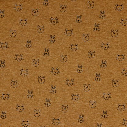 Beautiful Animals print in Oeko-tex (class 1) single jersey. Weighing 200gsm, this fabric is a lovely weight for dresses, tops and Children’s clothes.\nThis fabric is sold by the meter (m) rather than by the yard so you get a little extra. 1 yard = 36” and 1 meter = 39.