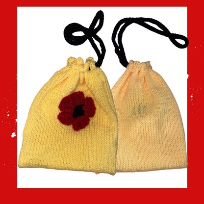 An easy to knit pattern suitable for a beginner who can knit and purl (stocking stitch). Make a draw string wash bag decorated with a poppy.