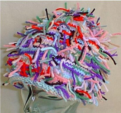 A picky looking hat, but so cute and fun to wear! You can even make more pickers than we did! Easy directions tell you how. Use up scraps of worsted weight yarn, and 16 circular needle, US # 7. You will also need double pointed # 7 for last few rounds of top decreasing. But dont worry, we didn't give you too many rows to do! One size fits most, and this is a style children and teens love!