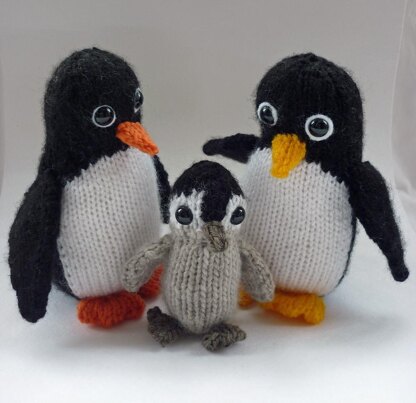 Everyone loves penguins! These can be knit either as toys or as Christmas decorations. This delightful family are simple to knit and have removable accessories for added cuteness and play value. Father penguin has a bobble hat and scarf. Mother penguin looks very stylish in her slouchy hat and baby penguin is super cute in his cheeky top-knot beanie. As with all my patterns there are clear instructions and plenty of stage by stage photos to guide you. The penguins use very small amounts of yarn (15 grams black and 4 grams white for one adult penguin) so are an excellent way to use up oddments