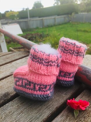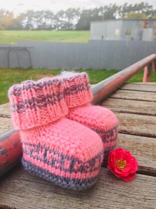 I used Acrylic Wool DK 8 ply (Brand Unity), but you could use any type of yarn as long as it meet the gauge. I used colour Grey (colour A) and colour pink (colour B) for this booties, but we could combine different colour if we want to as long as its contrast in colour so we could see the pattern.
