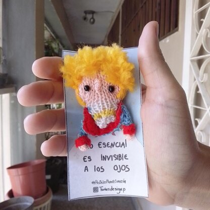 Postcard “little prince” (Postcards for the Heart) (Pattern in Spanish and English) Hello, This pattern is a postcard with a message and amigurumi. It is perfect to give and do it yourself. The pattern includes the digital postcard to print and knit the little prince.