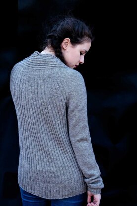 Raglan and yoke increases, skillfully integrated in the ribbing pattern, and an optically slimming shawl collar give this garment its air of sophisticated elegance, while incorporated positive ease and overlapping fronts make sure it fits worry-free every day.