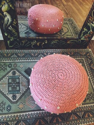 Adds some fun to any seating area with this pouf pattern! This pattern will require stuffing/insert to fill the casing. All instructions for adding the beads are included in the pattern! This is an advanced beginner/intermediate pattern. Must have knowledge of ch, sl st, post stitches, magic ring, working in the round, dc increases and decreases.