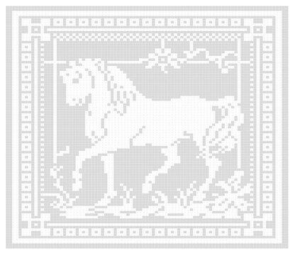 This is an original filet crochet pattern for my prancing horse. It's easy to follow instructions appropriate for even beginners of filet crochet, written in English using American crochet terminology. The entire project uses only two stitches: chain and double-crochet.