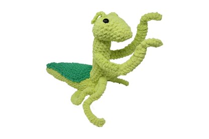 This crochet pattern for the Praying Mantis by Sarah Quillen creates a soft lovable 23" stuffed animal. The terms are US. The pattern includes an “easy to follow” layout with many pictures for reference. The pattern is designed for blanket yarn but can also be done in worsted weight yarn with a size F hook and 10mm eyes to create a much smaller praying mantis.