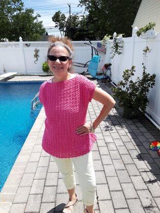The Pretty Little Shells crocheted tunic features a shell pattern and a picot trim on the sleeves. This top can go from spring into summer with a little tank top underneath. The fit is relaxed. It is worked flat. The openwork fabrication is made with a fine, cotton blend. The pattern includes 6 sizes, as well as a chart and a schematic.