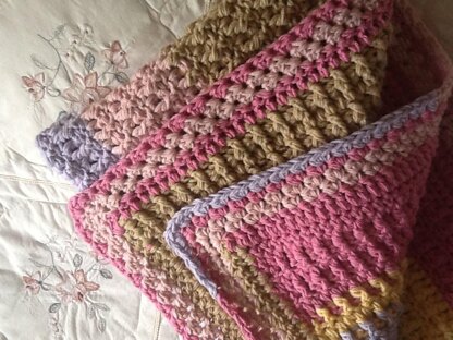 This design, Pretty Priscilla Throw is one of a kind. Sumptuous and completely reversible. Fits any decor in any room. Simple crochet stitches throughout.