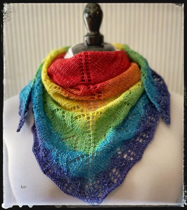 Finding ourselves is a journey. Sometimes the path to self-awareness is a short and direct one, and sometimes it’s one that takes many turns. I like how Ricky Martin has evolved over time and, in the end, realizes, “Just go within and do not lie to yourself.” I had a gorgeous, single, gradient, 100 gm cake of Love Is Love, by Knit Circus, and wanted to design a Pride pattern with it. I proceeded to embark on one of my famous “Sit-N-Spin” exercises and promptly got stuck on what exactly I could do with 100 gm/410 yards. A friend suggested a small shawl – perfect! Stockinette is direct and uncomplicated, while the zig-zag lace takes a few turns. This quick shawl offers the opportunity to consider how life has taken us down certain paths. Were they paths which allowed us to be true to ourselves? What paths will we choose for the future? Thank you for choosing Pride and Paths! All proceeds go to the Trevor Project. #PrideandPaths